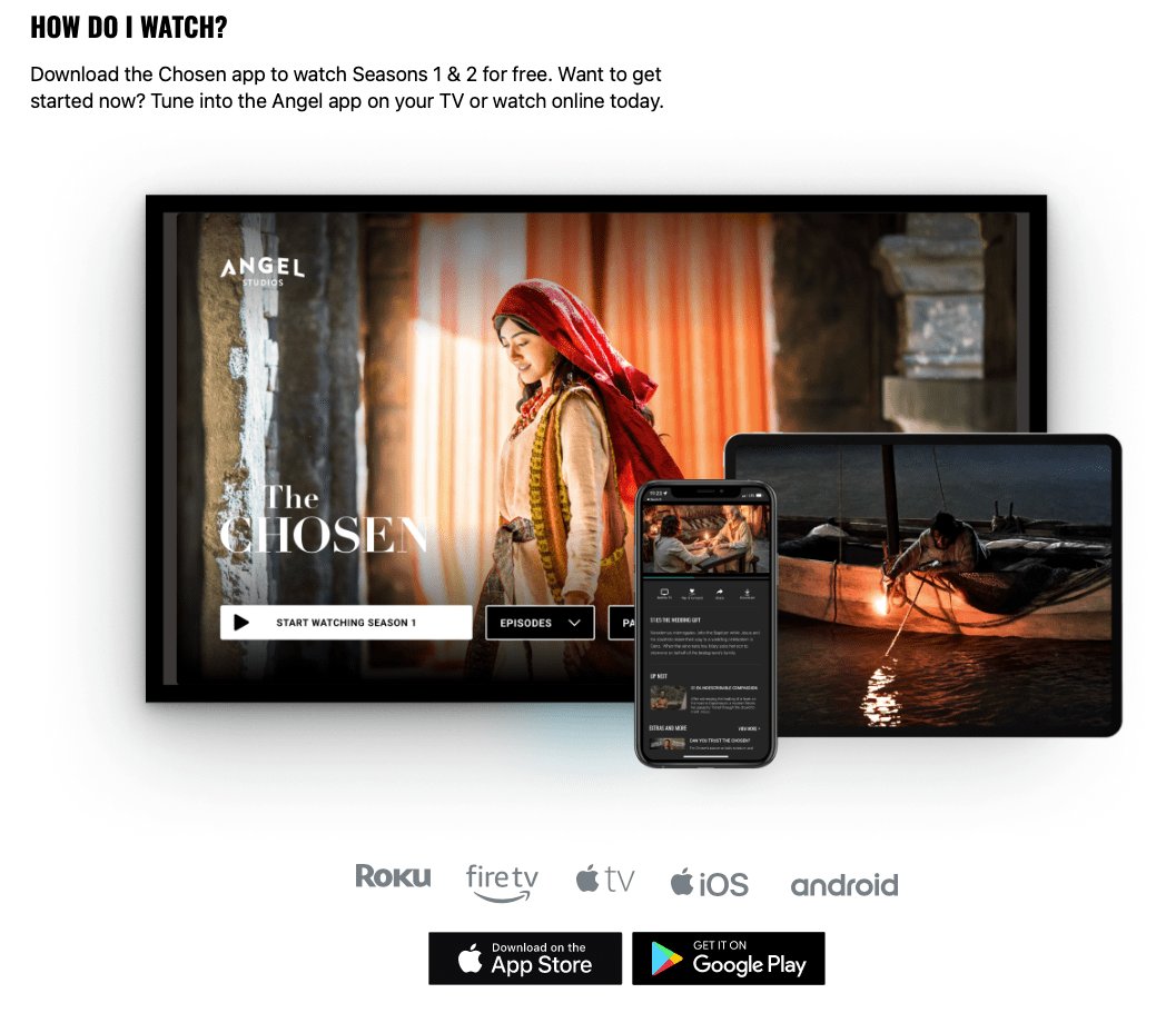 The Chosen Goeie gehalte vervolgreeks van Angel Studios oor Jesus se lewe. U kan selfs 'n toep aflaat vir maklike toegang op mobiele toestelle. Kliek hier op die prent:
